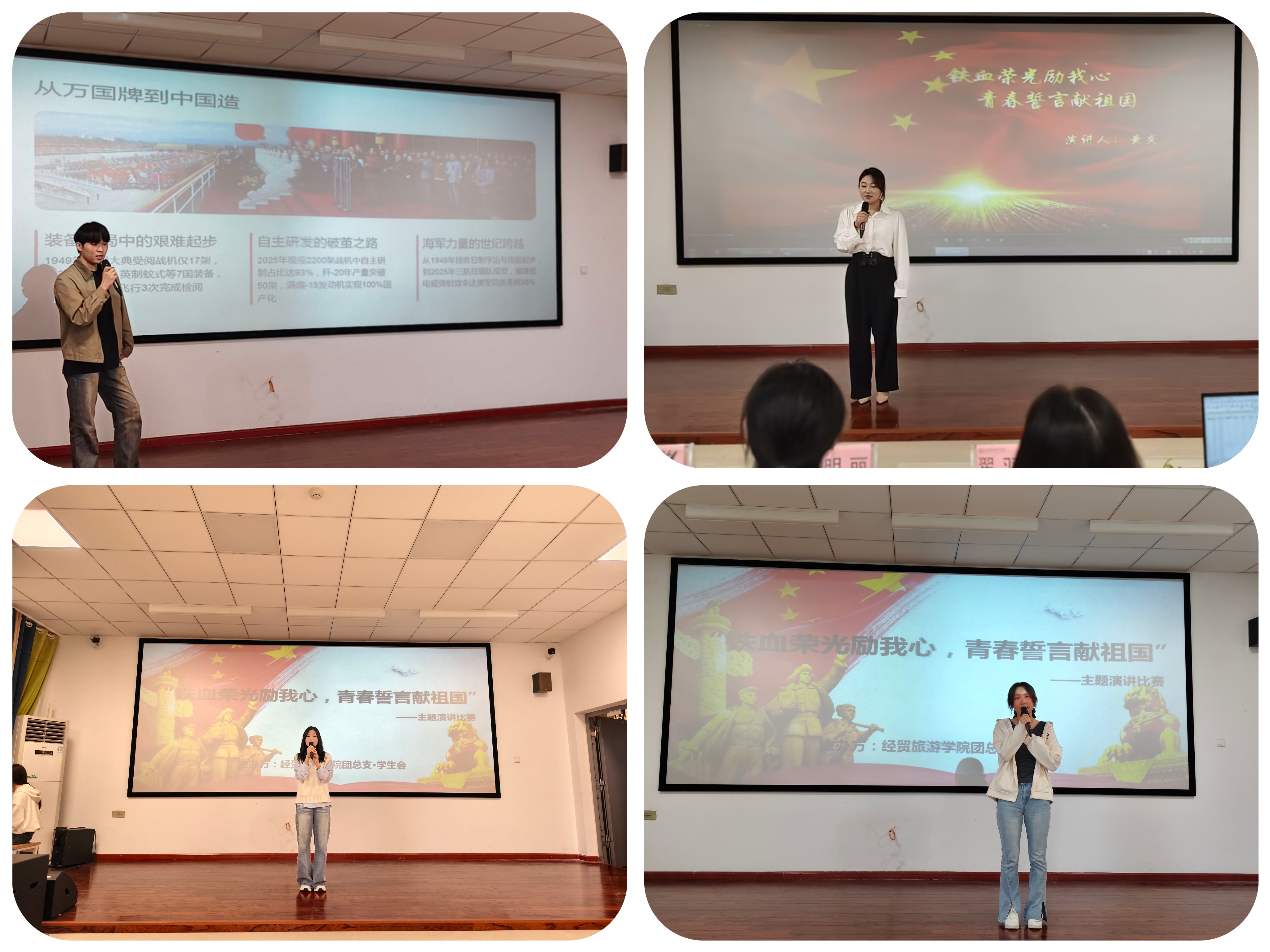 为厚植青年学子家国情怀,凝聚奋进力量,10月15日,ac米兰官网中文网站“铁血荣光励我心 青春誓言献祖国”主题演讲比赛在学院导游实训室圆满落幕。16名来自25级各专业的参赛选手同台竞技,以青春之声传递爱国之志,用激昂演讲诠释时代担当。
