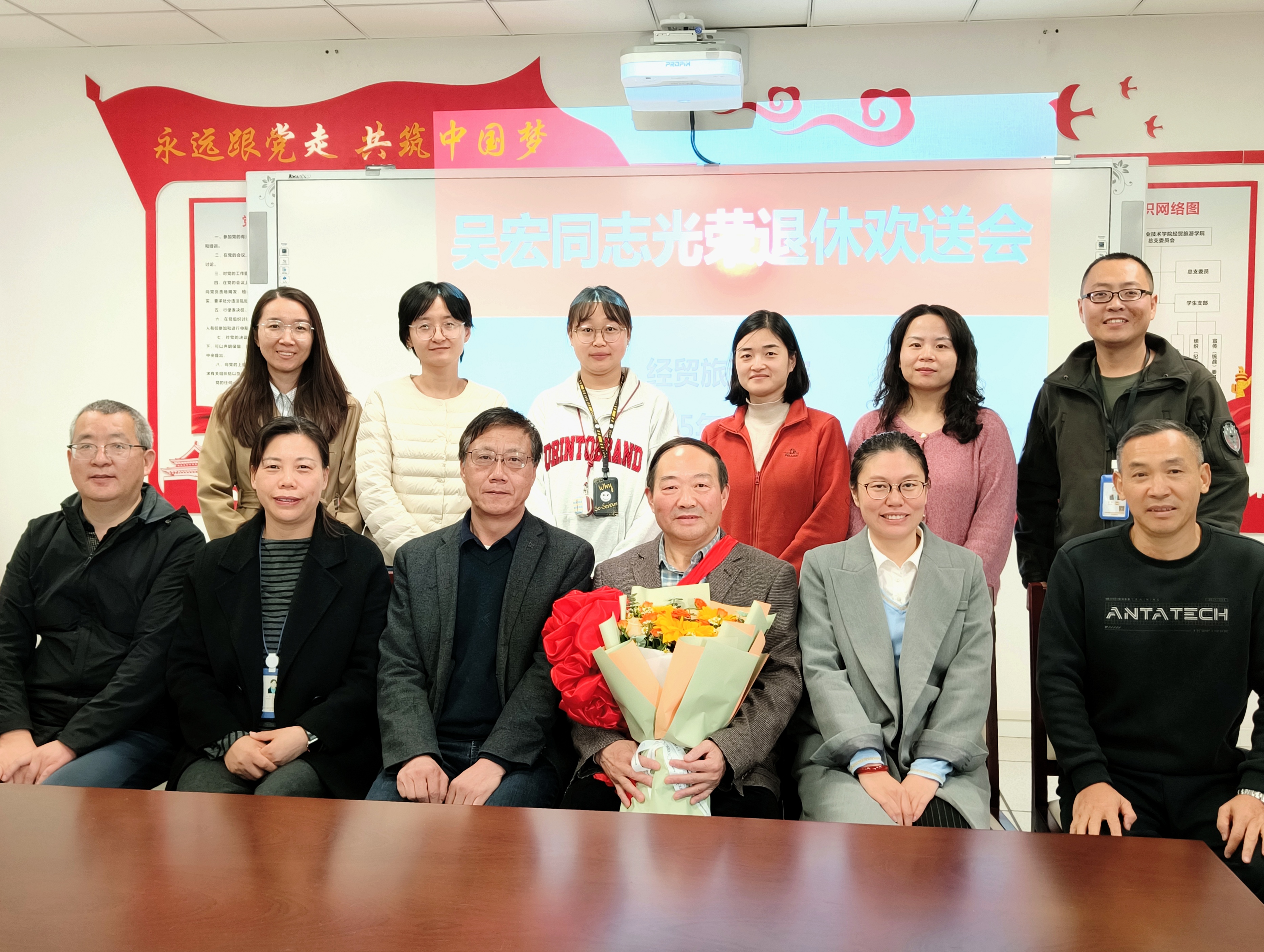 11月5日,ac米兰官网中文网站在三楼会议室举办吴宏老师光荣退休欢送会。学院党政、部分老教师、青年教师代表以及学校财务处张其悦、胡蓉等教师参会,党总支副书记赵倩倩主持仪式。