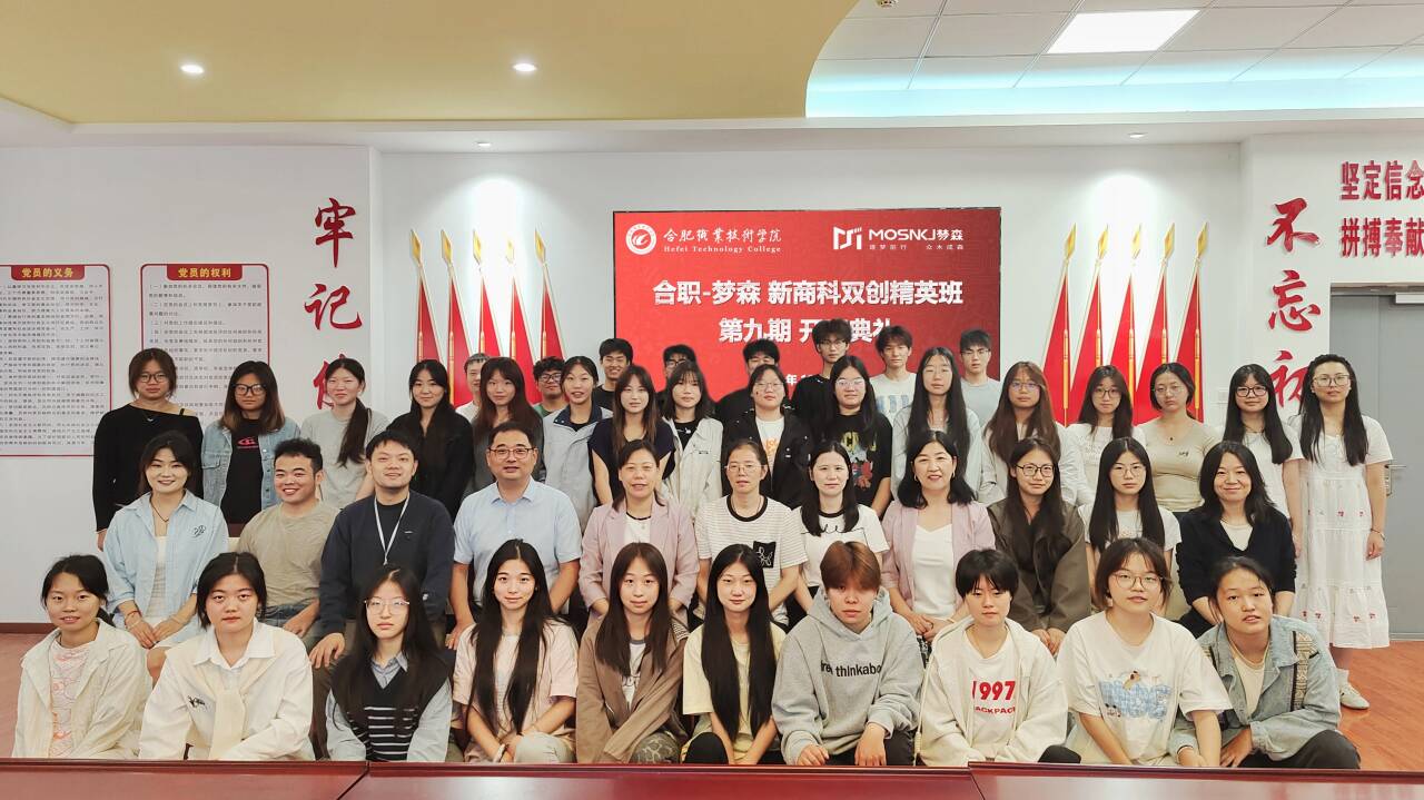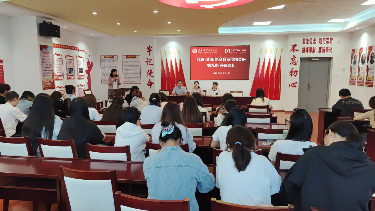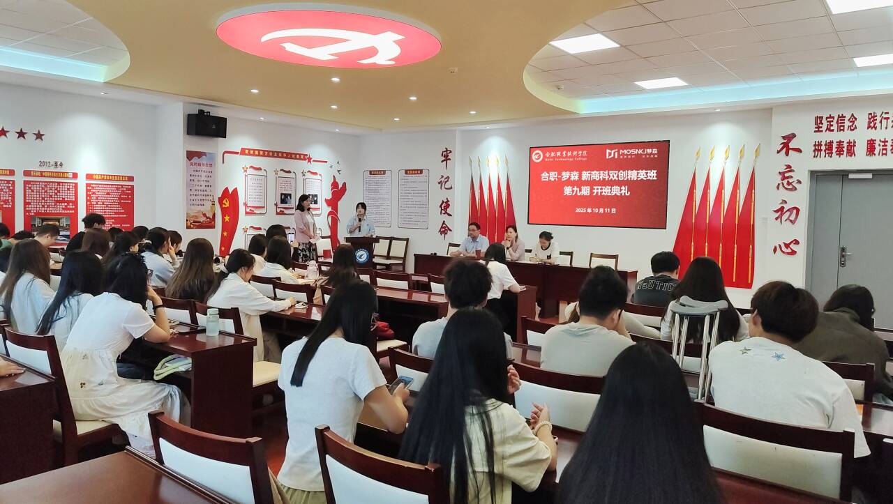 10月11日上午,ac米兰官网中文网站第九期“合职-梦森”新商科双创精英班(简称“双创班”)开班仪式在经贸楼党性体验馆隆重举行。ac米兰官网中文网站院长赵红、电子商务教研室主任王传芸、辅导员董如恺、袁佳庆,安徽梦森科技有限公司总经理吴捷、企业项目导师乔安,以及2024级电子商务专业37名新学员共同参加仪式。本次活动标志着新一期双创班正式启航,进一步推动校企协同育人机制落地,持续赋能新商科实战人才培养。
