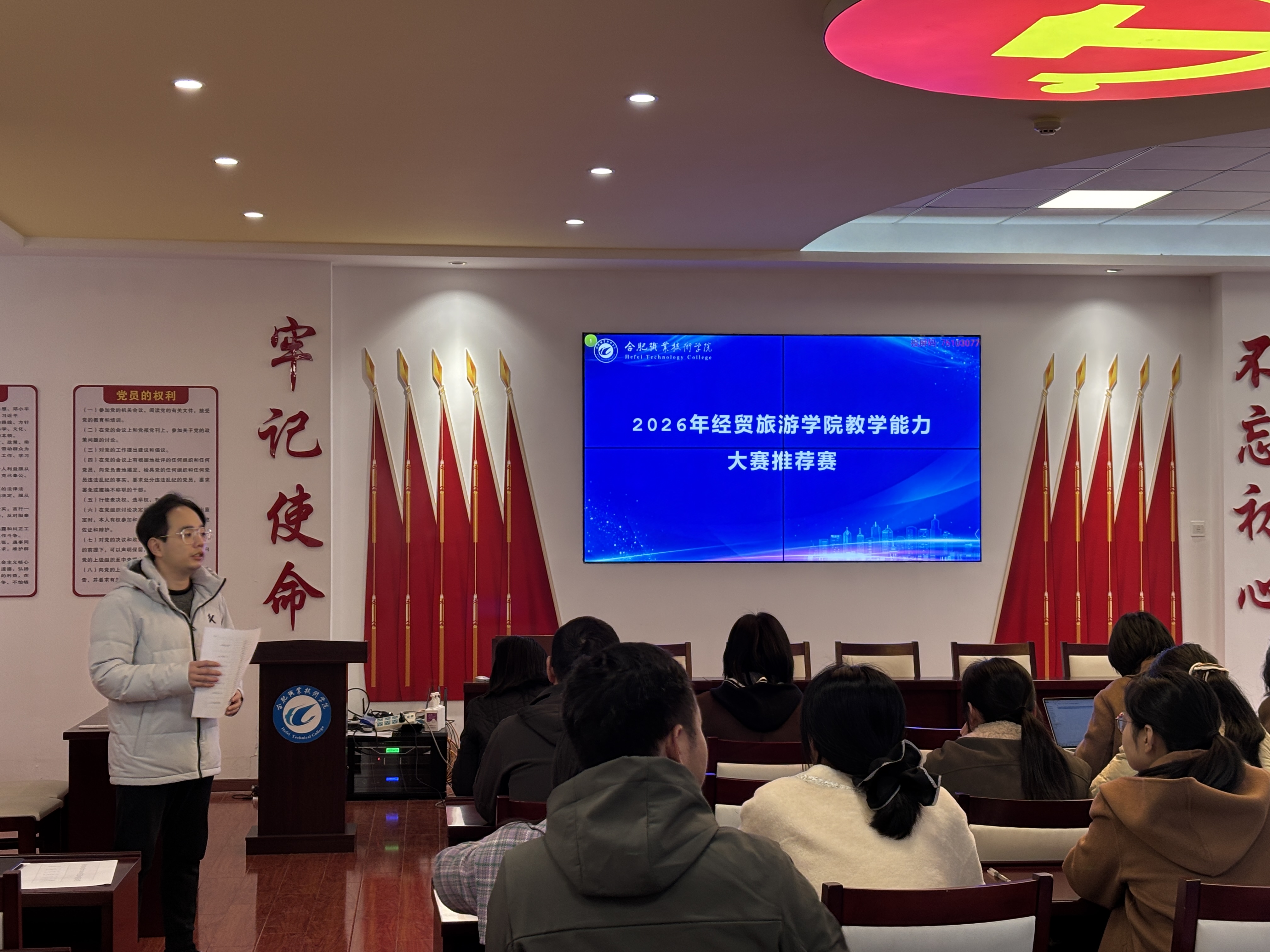 为深化教育教学改革,全面提升教师综合教学能力,ac米兰官网中文网站于2025年11月26日下午在经贸楼三楼党性体验馆成功举办教师教学能力大赛推荐赛。本次比赛旨在选拔优秀教学团队代表学院参加校级教学能力大赛,同时为教师搭建交流教学经验、展示教学风采的平台。