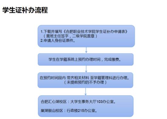 1、填写《合肥职业技术学院学生证补办申请表》一份