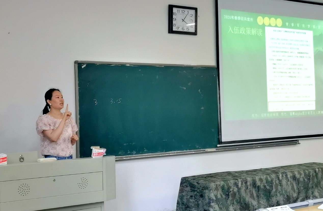 随后,学院征兵负责老师就大学毕业生应征入伍的基本条件、报名流程、优惠政策、退役安置等问题进行了宣讲,帮大家算清参军入伍的“政治账”、“学业账”、“成长账”和“经济账”,鼓励大家积极应征,献身国防事业,让青春在军营中绽放。