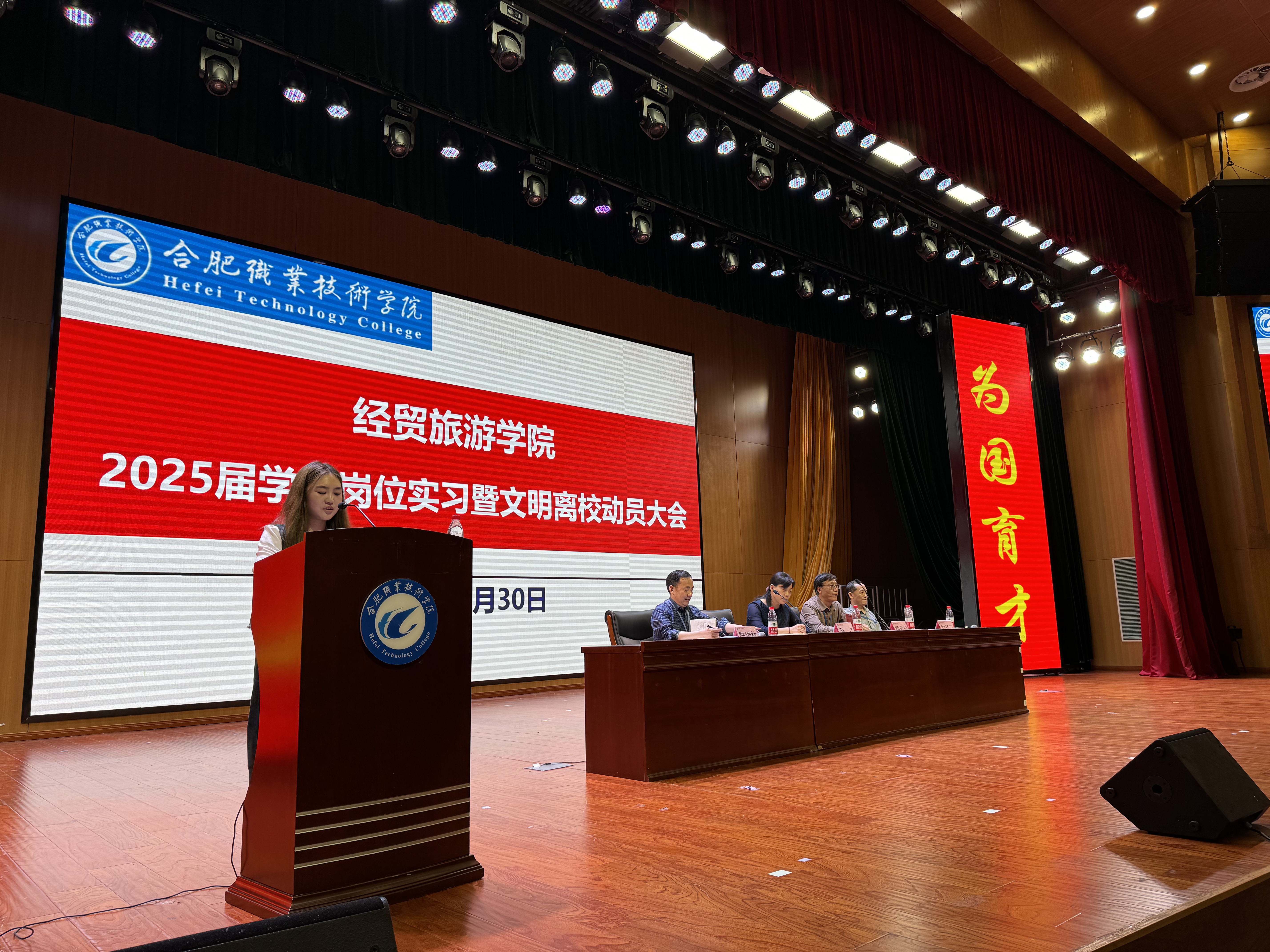 来自合肥融创酒店人力资源部的汪越洋经理作为企业代表发言,她对校企双方长期以来的紧密合作表示感谢,并高度认可我校实习学生的表现,同时对即将来店实习的同学们表示热烈欢迎;来自2021级金融科技应用2班的优秀学生代表岳凤同学也在大会上分享了自己的实习生活和成长体验,她激励学弟学妹们要不怕困难、勇于挑战,积极主动迎接实习生活。