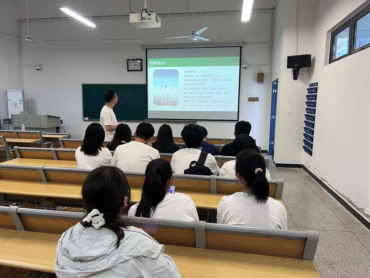 宣讲会现场,五家企业分别在教学南楼102、108、109、110、111教室展开宣讲。各企业代表详细介绍了公司的发展历程、企业文化、岗位需求以及职业发展路径,并针对学生关心的薪资待遇、晋升机制等问题进行了耐心解答。活动现场气氛热烈,学生们积极参与互动,与企业代表深入交流,展现了浓厚的求职热情。